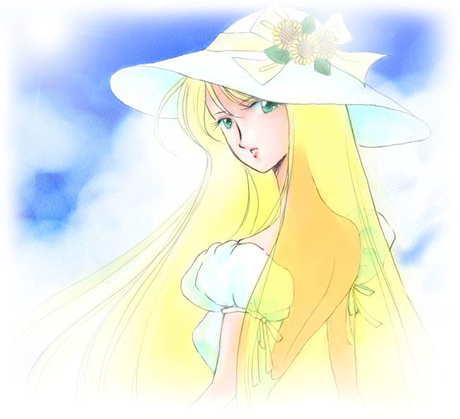 真夏の女神さまっ 久々に少女漫画っぽいお絵描きがしたくなったので、テレサを描いてみました。 ひまわりとは対照的な彼女ですが、真夏の雰囲気も似合うじゃない。(^^) ***** ギンギンに照り付ける日差しの中でも、彼女の周囲だけは爽やかな風が吹いていそうですね! 真夏の高原で深窓の令嬢と運命的な出会いをし、恋に落ちる都会の真面目な医学生なんてシチュエーションが思い浮かびそうです